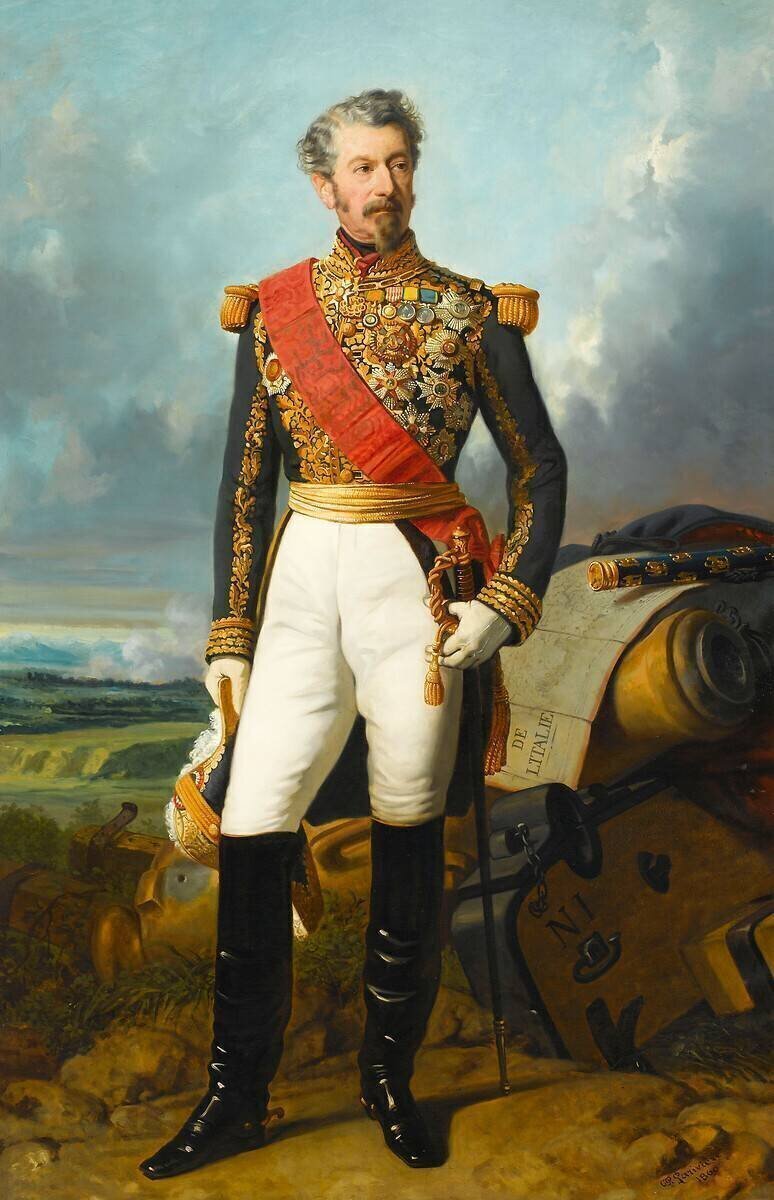 Maréchal de l'Empire en 1859 ; aide de camp de Napoléon III; ministre de la Guerre de 1867 à 1869 - représenté pendant la campagne d'Italie en 1859 - Il porte le collier de l'Ordre de l'Annonciade du Piémont ; le grand cordon et la plaque de Grand Croix
