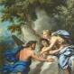 Diane environnant d'un nuage sa nymphe Aréthuse pour la soustraire à la poursuite du dieu-fleuve Alphée