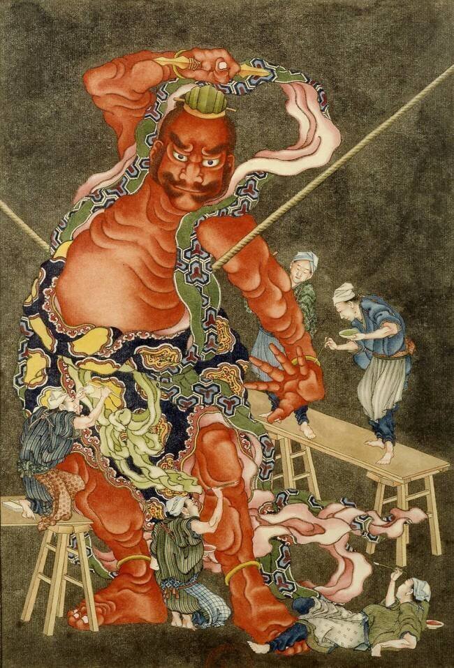 Artisans finishing a statue of Niô, "the Two Kings"