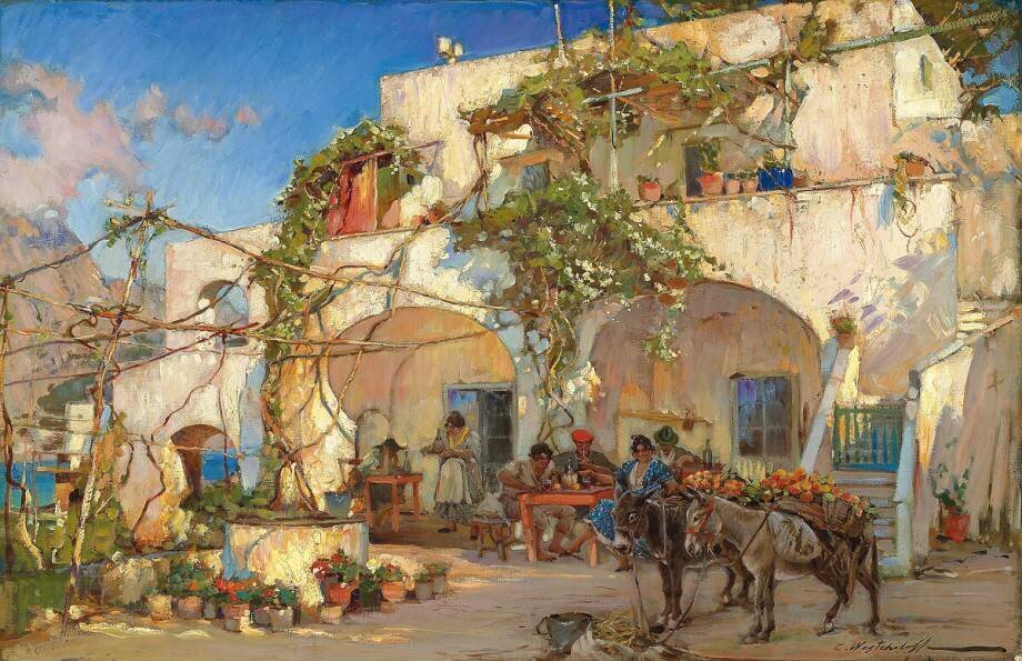 Subjects: AnimalsKeywords: 20th century, Russian, Sun, animal, apartment block, balcony, balcony, building, climbing, donkey, façade, furniture, furniture, group, human, mammal, man, nature, oil, oil, people, people, plant, sitting, table, tavern, woman(Ref : 344368) © Photo © Christie's Images / Bridgeman Images