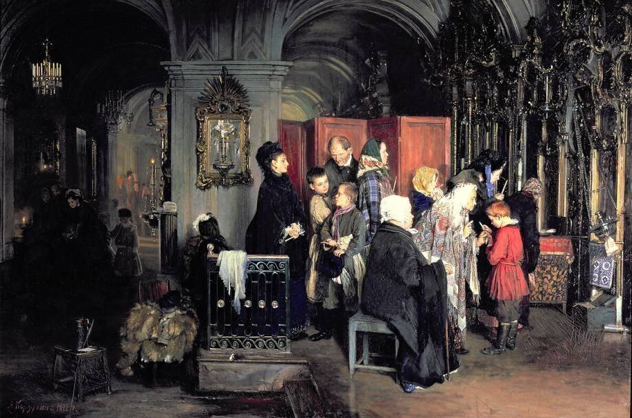 « Before the Confession » is kept at Tretyakov Gallery, Moscow, Russia.