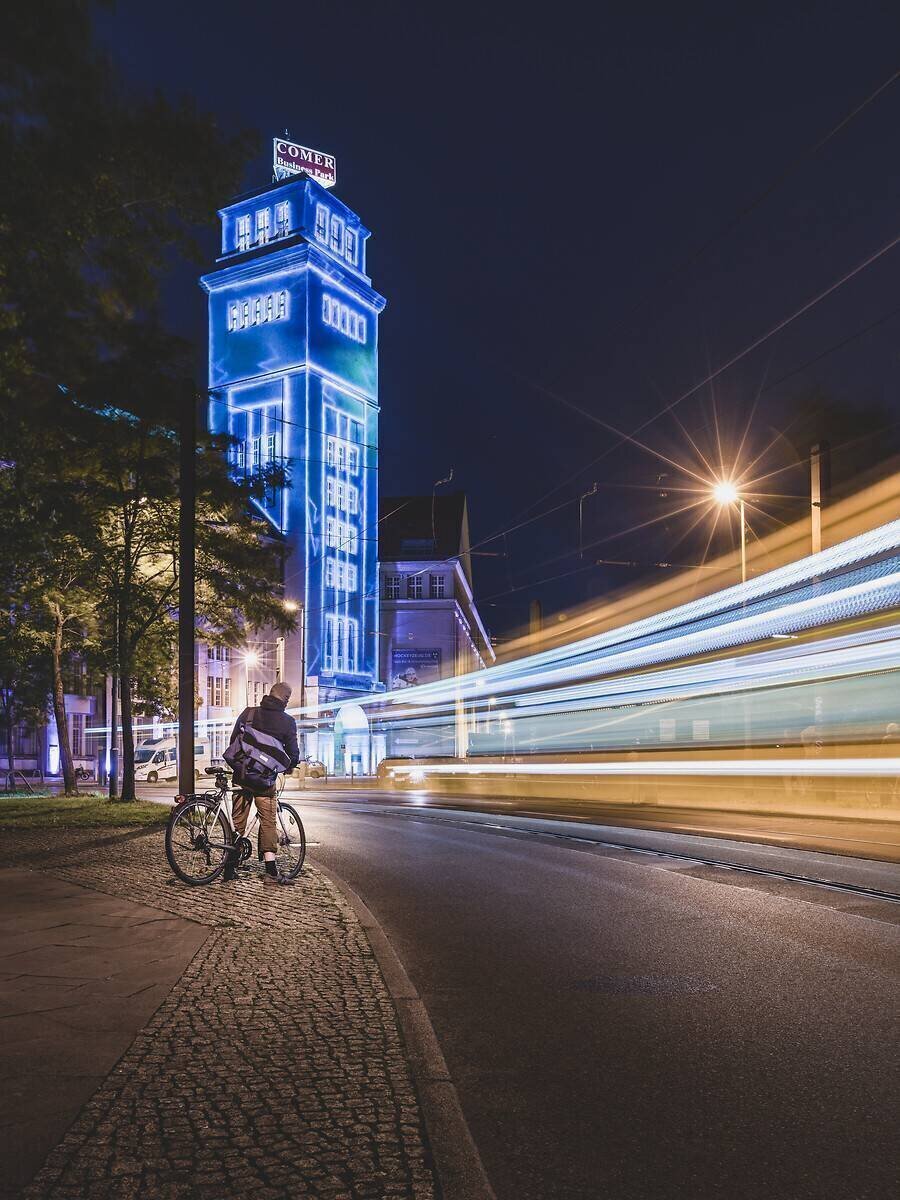 Subjects: Architecture, LandscapeKeywords: Berlin, apartment block, architecture, bicycle, building, cyclist, night, photography, tram, transport, vehicle(Ref : 152068) © Ronny Behnert / Bridgeman Images