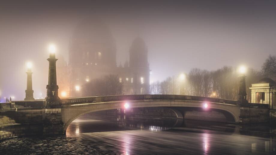 Keywords : Berlin, Germany, apartment block, architecture, bridge, building, cathedral, dome, fog, ice, ice, mist, mist, night, photography, religion, river, river, winter