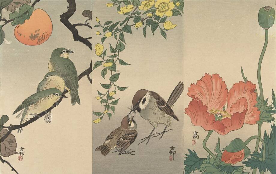 Subjects: AnimalsKeywords: Japan, Japanese, artist, bird, history, illustration, nature, painter, plants, print, sparrow, textile art(Ref : 268807) © Bridgeman Images