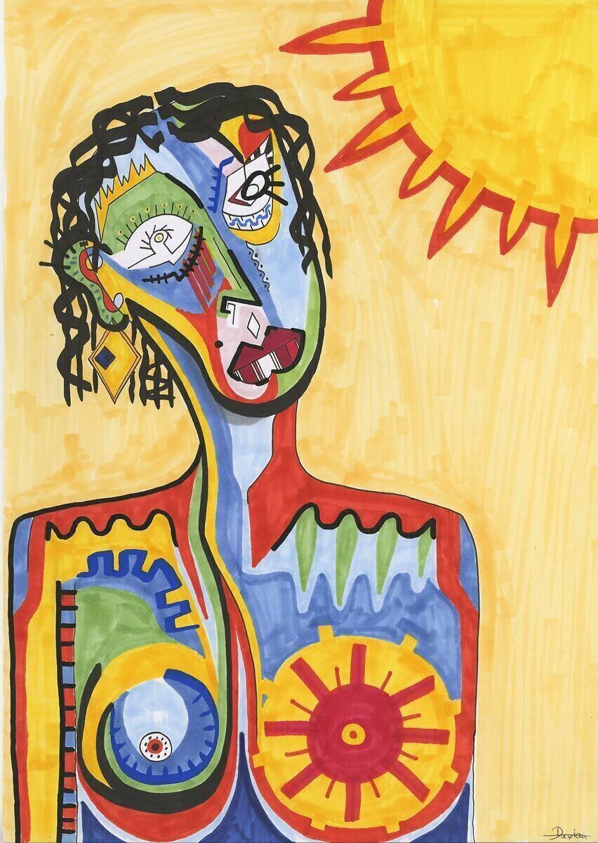 This artwork is a drawing from the contemporary period. It belongs to the expressionism styles and naïve art styles.