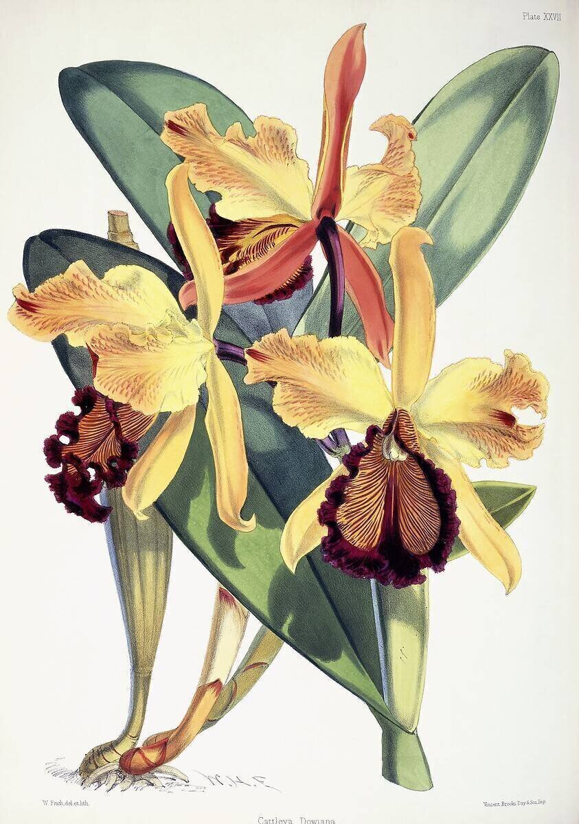 Keywords : 19th century, Flora, biology, book, botany, colour, day, drawing, engraving, flower, illustrated, illustration, orchid, outside, plant, plate, print, yellow