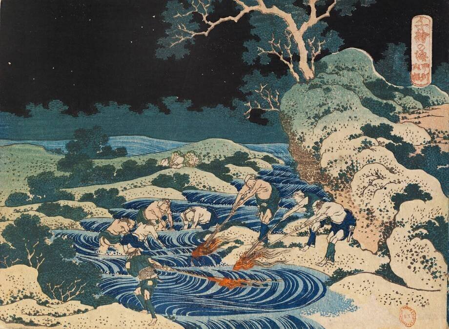 Subjects: Genre scenes, World cultureKeywords: Japan, Japanese, bare torso, evening, japanese print, landscape background, man, night, torch, water course, worker(Ref : 134951) © BNF
