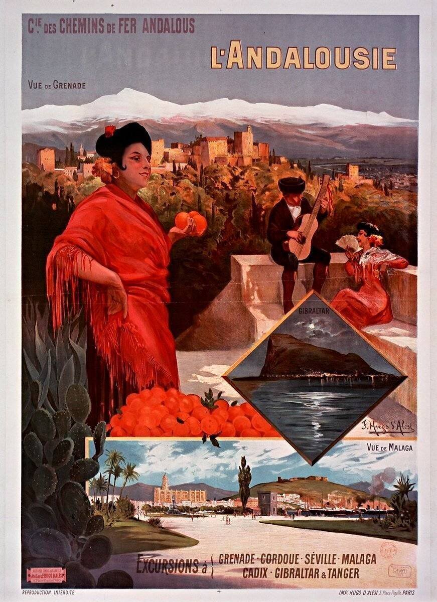 « Cie des Chemins de Fer Andalous. L'Andalousie. Excursions à Grenade, Cordoue [...], Tanger. » is kept at Bibliotheque Nationale, Paris, France.