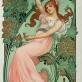 Subjects: FoodKeywords: 20th century, Art Nouveau, Cancer, Epicurean, Virgo, alcohol, bottle, drink, grape, green, leaf, pink, red-head, sign of the zodiac, stem, young woman(Ref : 131693) © BNF