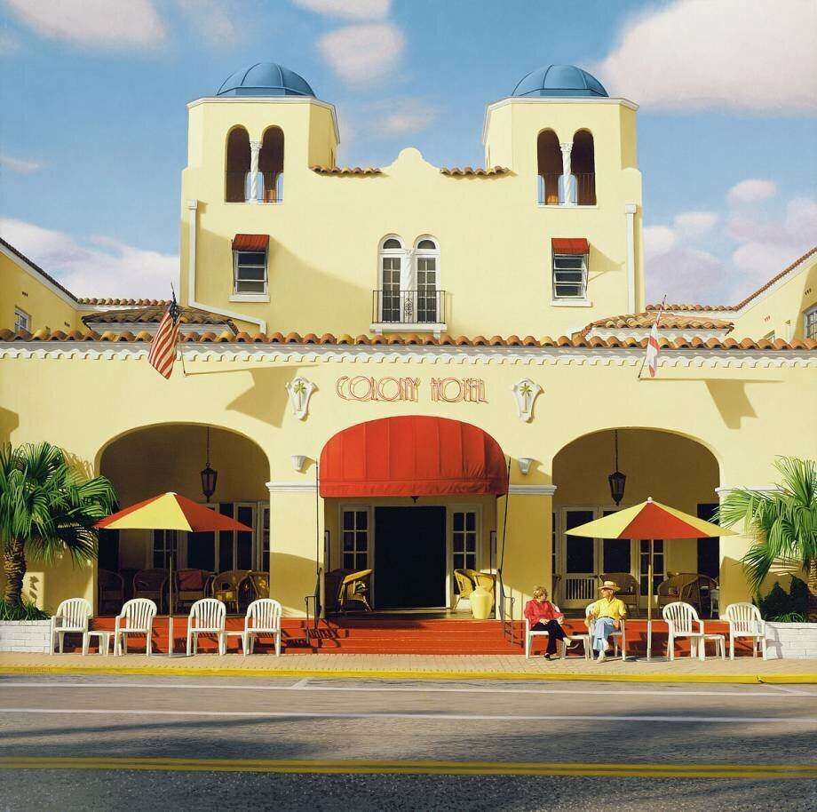 Subjects: UrbanKeywords: Hyperrealism, USA, couple, façade, hotel, parasol(Ref : 226447) © Bridgeman Images