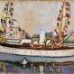 Tout comme Monet Duffy avait une petite prédilection pour le littoral normand, pour ses plages et ses ports. Néanmoins Dufy fut plus marqué par le fauvisme naissant que par l’impressionnisme. A la complexité iridescente de la touche de Monet, il préfère le traitement synthétique d’un Matisse. Par conséquent, il est sensible aux accords de couleurs plutôt qu’aux jeux de lumière. Sa recherche formelle s’oriente alors vers toujours plus d’épure et de simplicité. Ici Dufy a réduit le navire à une bande de couleur blanche, s’attachant plutôt à faire rimer les teintes chatoyante des drapeaux et l’entremêlement des reflets. Cette toile révèle aussi son goût pour les formes courbes, et l’on y retrouve sa facture douce et pleine de rondeur.