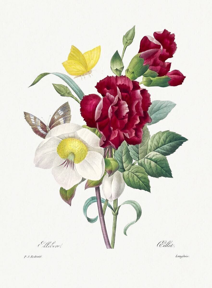 Ellebore et Oeillet OF Pierre Joseph Redouté
