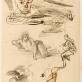 Etudes : tête d'enfant, femme nue allongée, homme assis, tête de cheval.