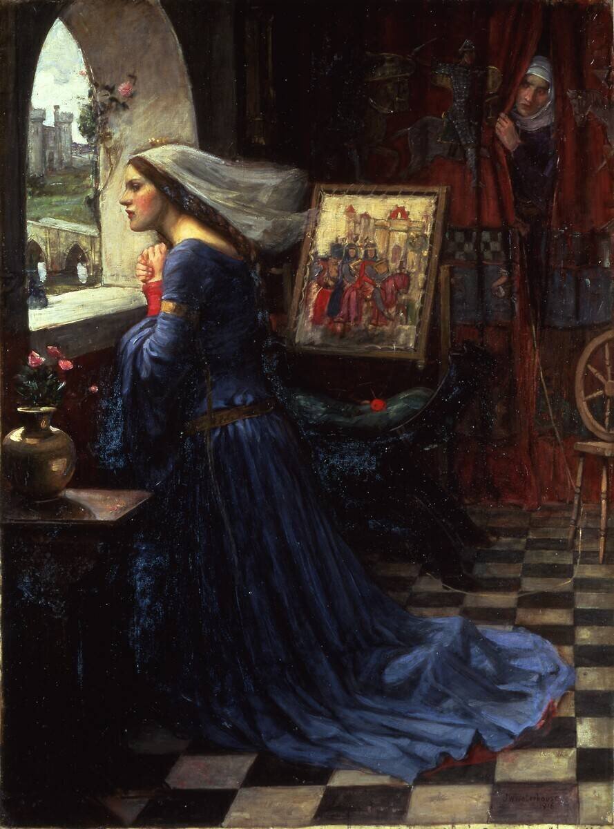 Keywords : English, Europe, European, Germany, Great Britain, Pre-Raphaelite, United Kingdom, anxiety, beauty, black art, castle, curtain, domestic, excitement, kneeling, lover, lover, lover, profile, window