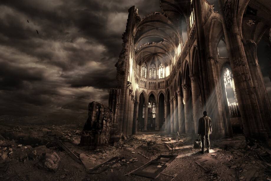 Subjects: ArchitectureKeywords: black art, building, church, cloud, light effect, man, ruins(Ref : 258697) © Christophe Kiciak / 1X