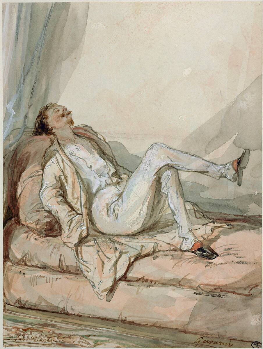 Ce dessin fait partie d'une série de quinze aquarelles qui furent gravées sur acier et réunies avec un texte de Jules Janin en un volume intitulé "Les Petits Bonheurs".