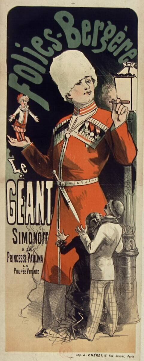 « Folies-Bergère : Le géant Simonoff et la princesse Paulina la poupée vivante » is kept at Bibliotheque Nationale, Paris, France.