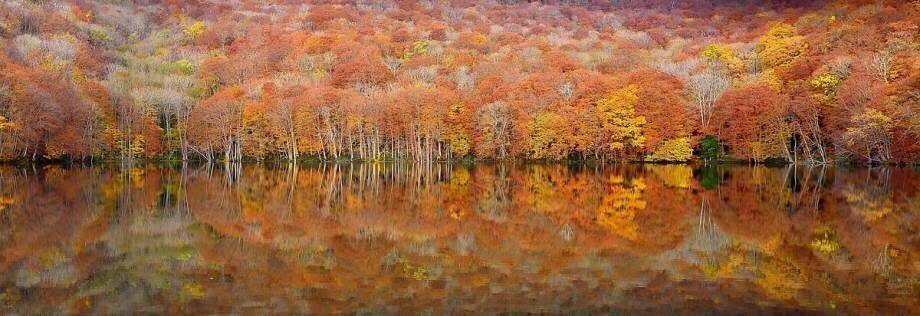 Subjects: LandscapeKeywords: autumn, forest, green, landscape, mirror effect, nature, orange, photography, red, reflection, yellow, étendue d'eau(Ref : 194905) © Sho Shibata / 1X