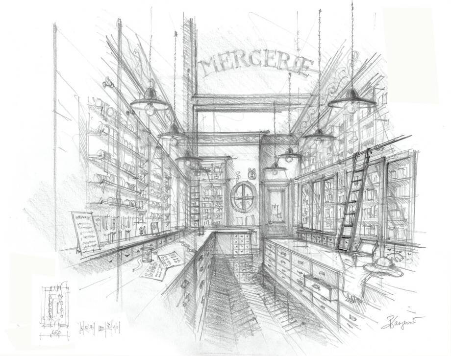 Subjects: Architecture, FashionKeywords: architectural feature, department store, drawing, haberdashery, perspective, sewing, shop(Ref : 364787) © Pascal Langevin