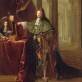 Secrétaire d'Etat en grand costume de chancelier de l'ordre du Saint Esprit, près d'un portrait de Jean-Baptiste Colbert (1665-1746), présenté par un serviteur coiffé à la polonaise 1701-1706