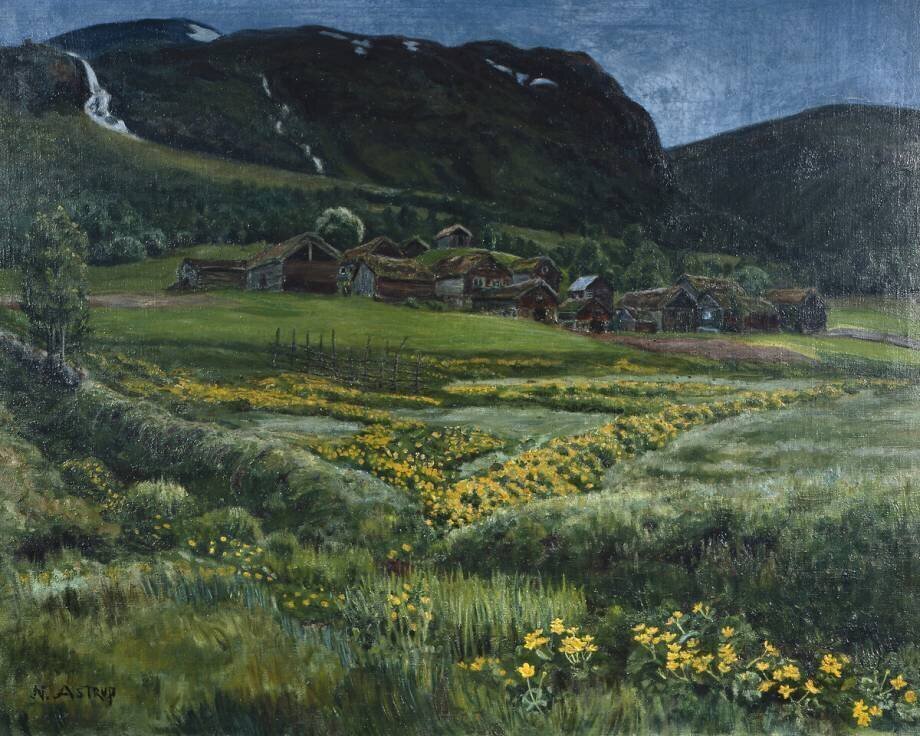 June night and old western Norway yard OF Nikolai Astrup