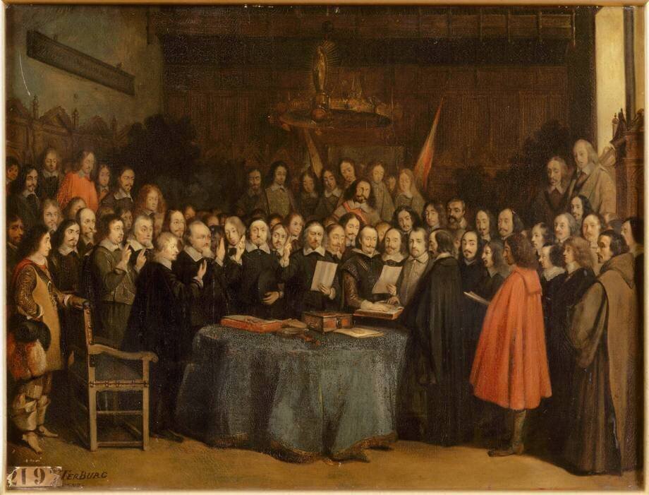 La prestation de serment après la ratification de la paix entre les Espagnols et les Néerlandais, à l'hôtel de ville de Munster, 15 mai 1648