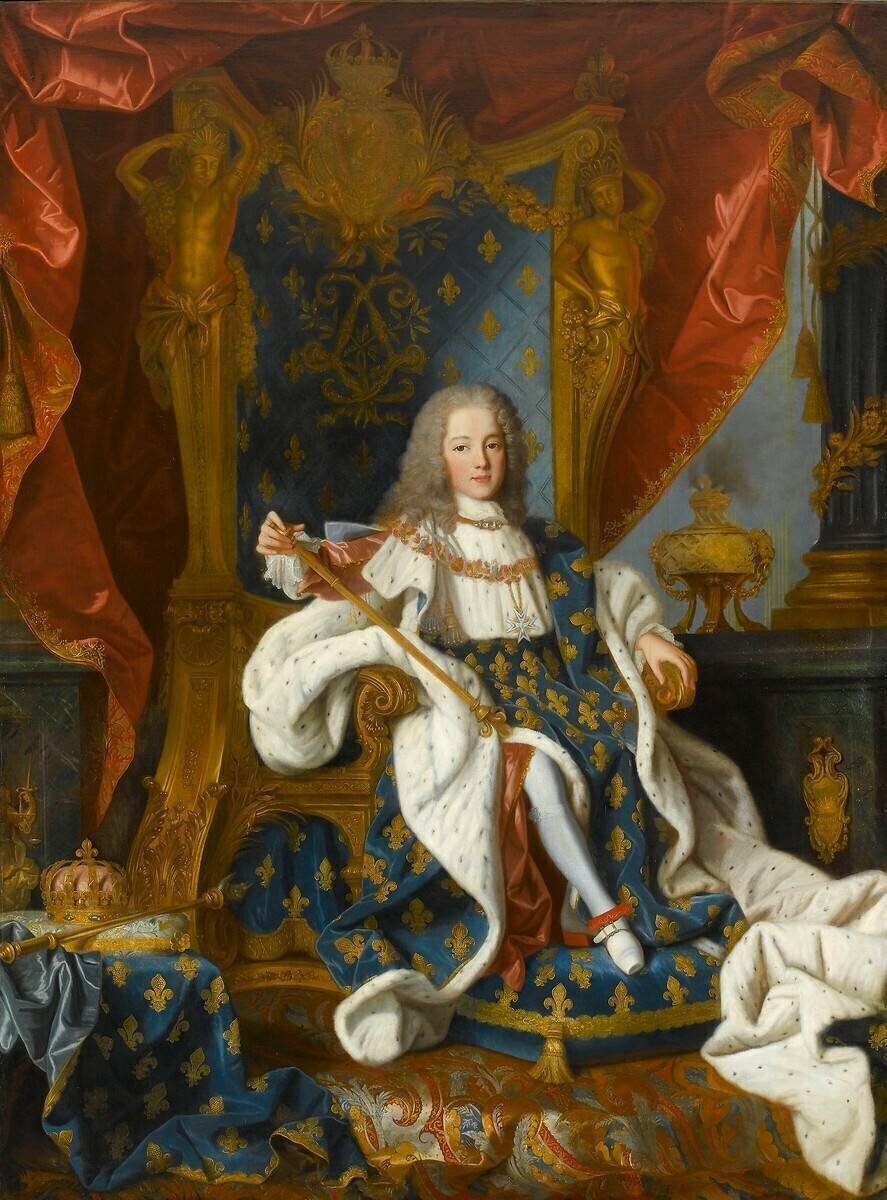« Louis XV (1710-1774) roi de France, âgé de 9 ans, en costume royal, assis sur le trône » is kept at Musée et Domaine National de Versailles et de Trianon, Versailles, France.