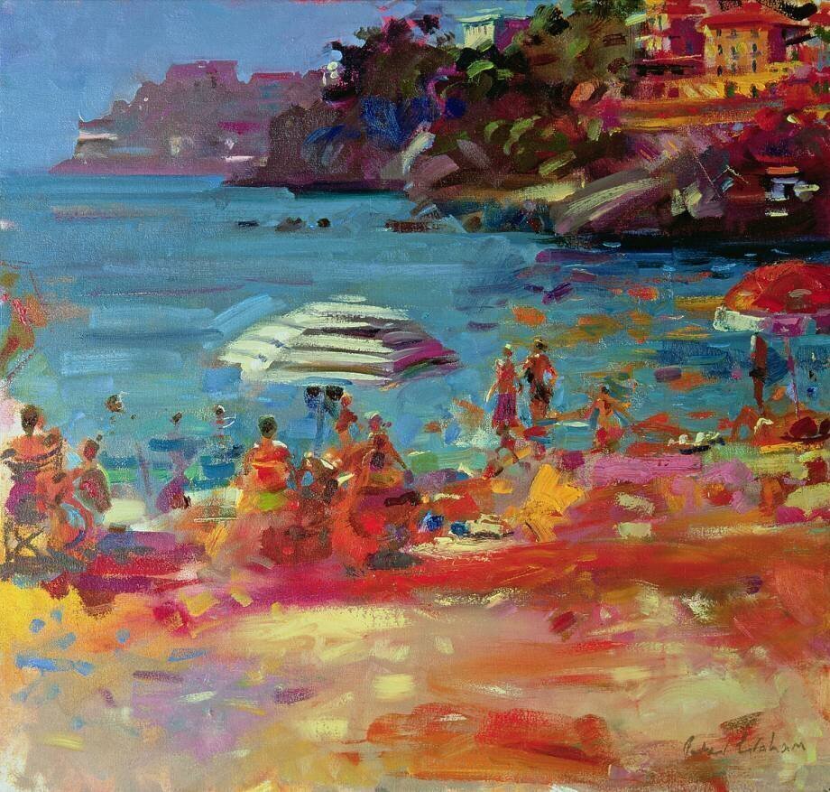 Subjects: SeascapeKeywords: Europe, European, France, French, Mediterranean, Painting, beach, coast, Painting, sea, seaside, shore, swimming, swimming, textile art(Ref : 359275) © Peter Graham. All Rights Reserved 2023 / Bridgeman Images