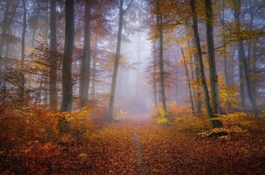 Subjects: LandscapeKeywords: autumn, blurred foreground, dead leaf, forest, landscape, mist, orange, path, photography, red, tree, yellow(Ref : 221062) © Norbert Maier / 1X