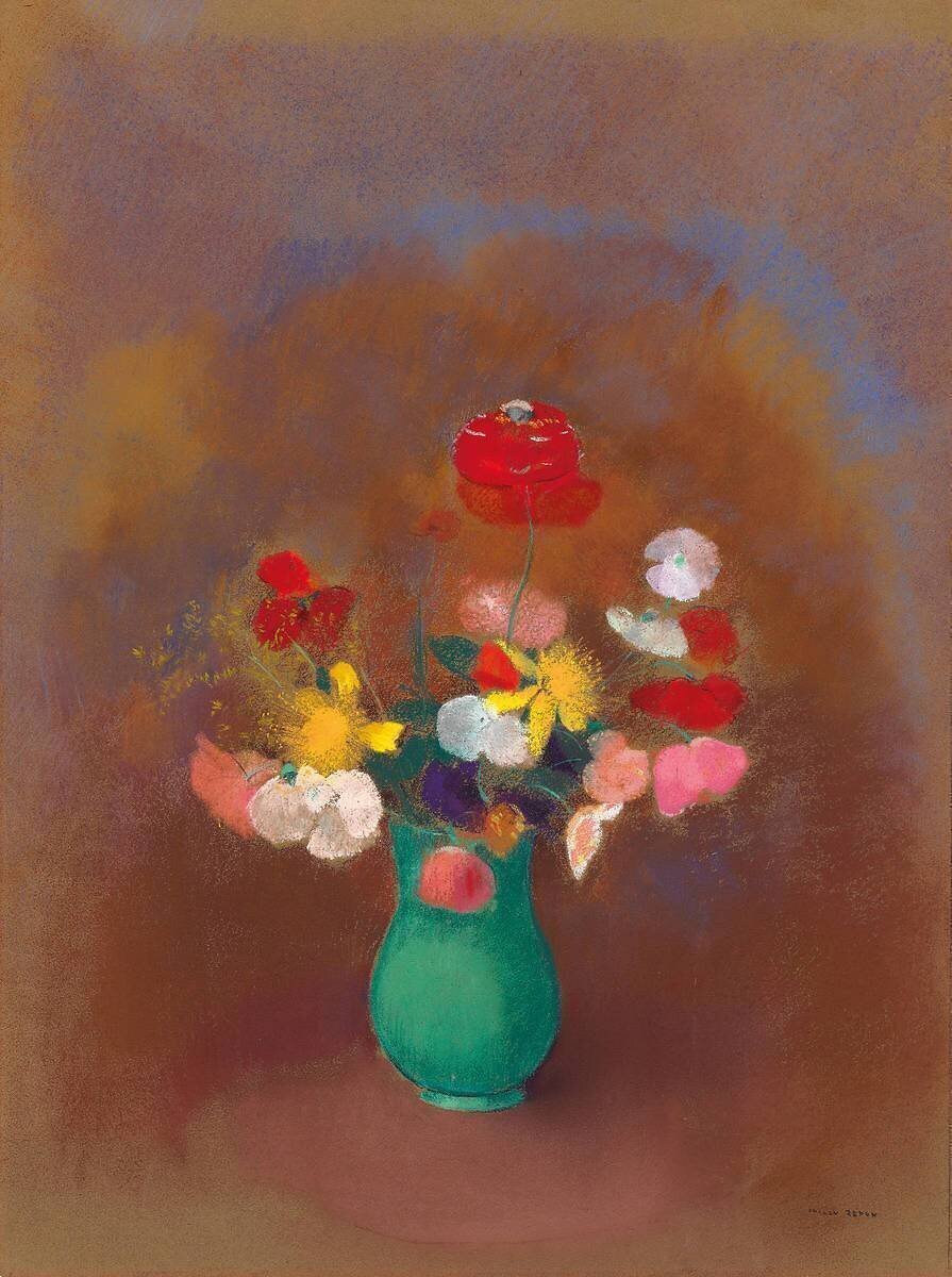 Poppies in a Green Vase OF Odilon Redon