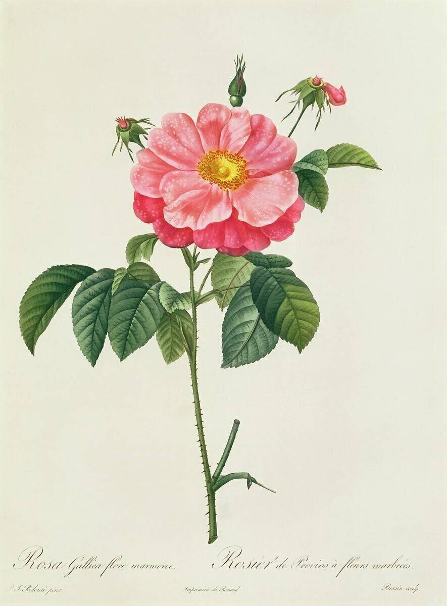 Rosa Gallica Flore Marmoreo OF Pierre Joseph Redouté