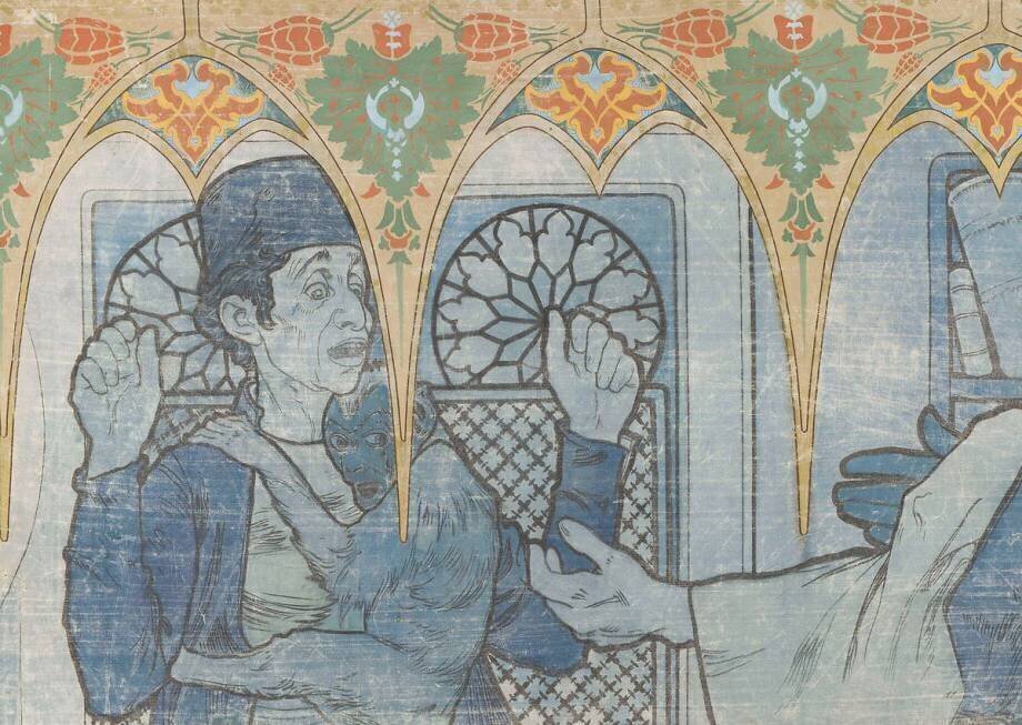 Subjects: ArchitectureKeywords: Art Nouveau, frieze, man, monkey, offering(Ref : 97871) © Musée d'Orsay, Dist. RMN /Patrice Schmidt