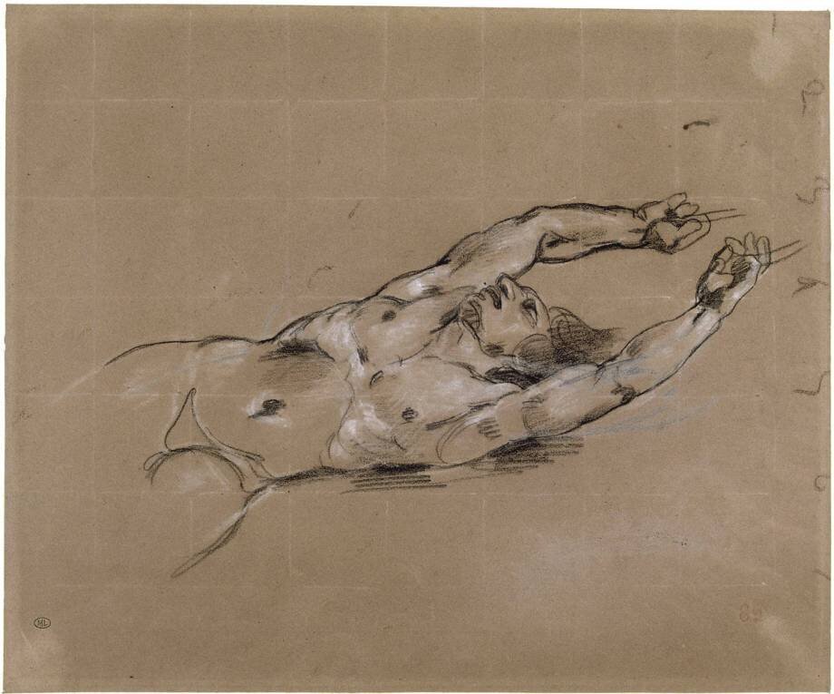 Etude d'homme nu renversé en arrière; étude pour le damné de gauche de "La Barque de Dante".
