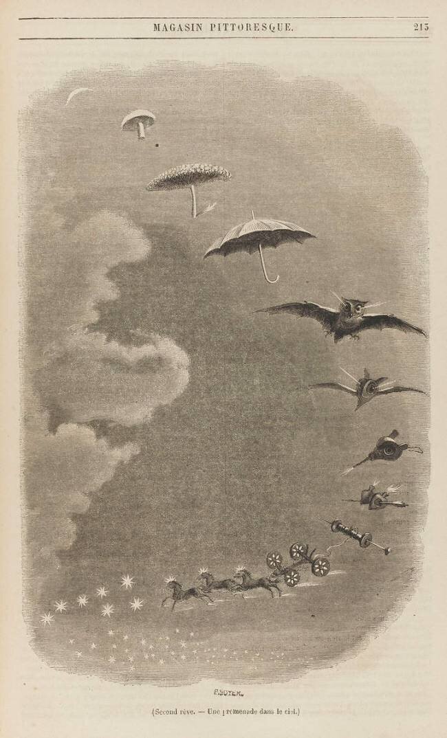 D'après Grandville (dit) Deux rêves ; illustrations parues dans le Magasin Pittoresque , volume 27 (1847)