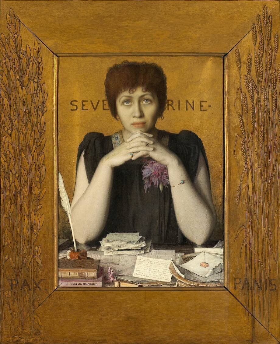 Subjects: PortraitKeywords: 19th century, Symbolism, book, feather, gold, journalist, portrait, woman, writing, yellow(Ref : 70008) © Musée d'Orsay, Dist. RMN /Patrice Schmidt