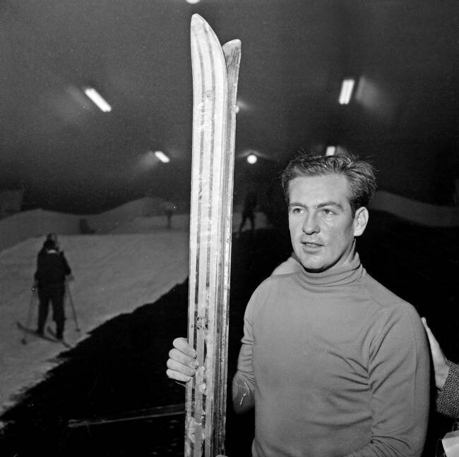 1668333 Skier Jean Vuarnet Opening A Piste in Paris November 26, 1960 (b/w photo); (add.info.: Skier Jean Vuarnet opening a piste in Paris november 26, 1960); Photo © AGIP; RESTRICTIONS MAY APPLY FOR COMMERCIAL USE - PLEASE CONTACT US; out of copyright.