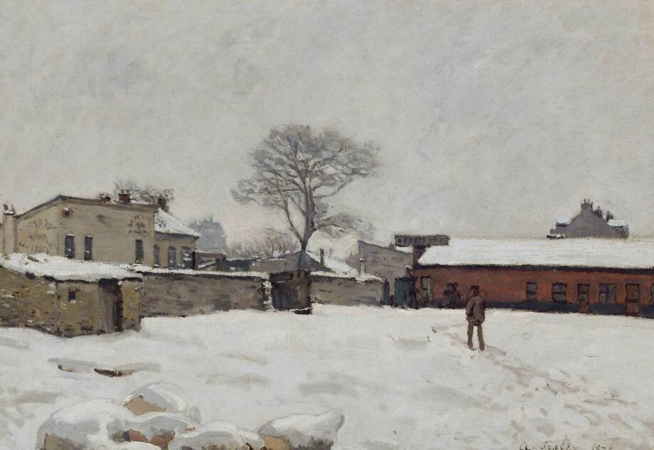 « Sous la neige : cour de ferme à Marly-le-Roi » is kept at Musee d'Orsay, Paris, France.