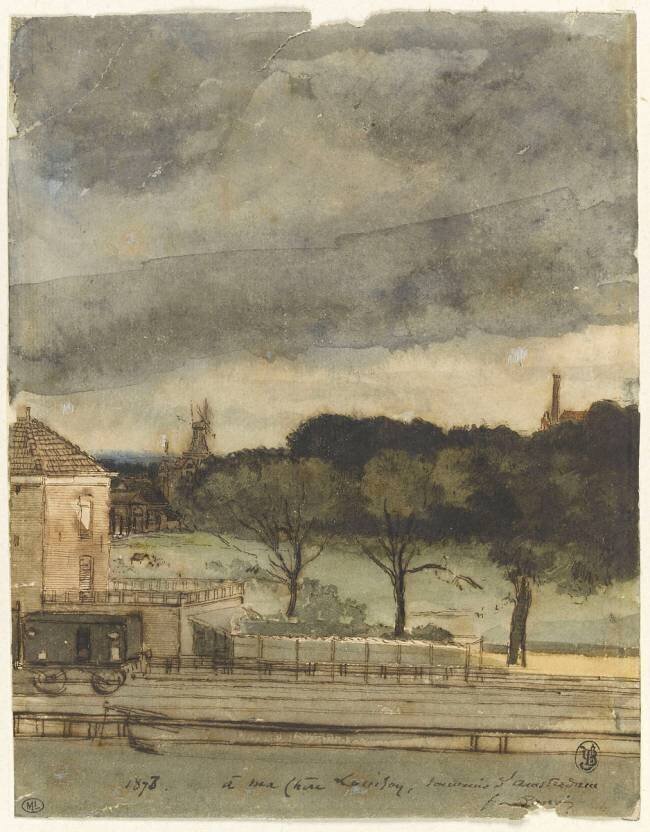 « Station de chemin de fer aux environs d'Amsterdam » is kept at Louvre, Paris, France.