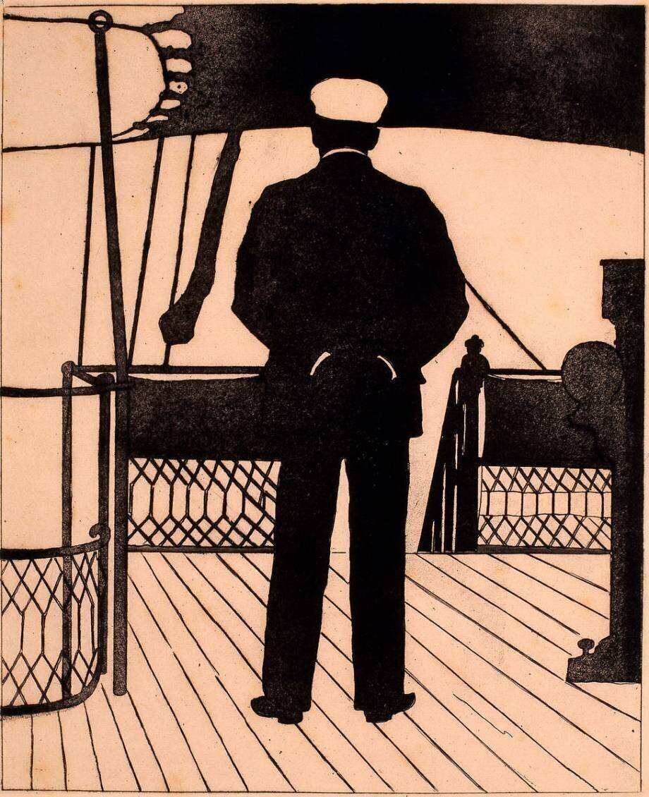 Sur le pont d'un bateau, un homme de do... OF anonymous