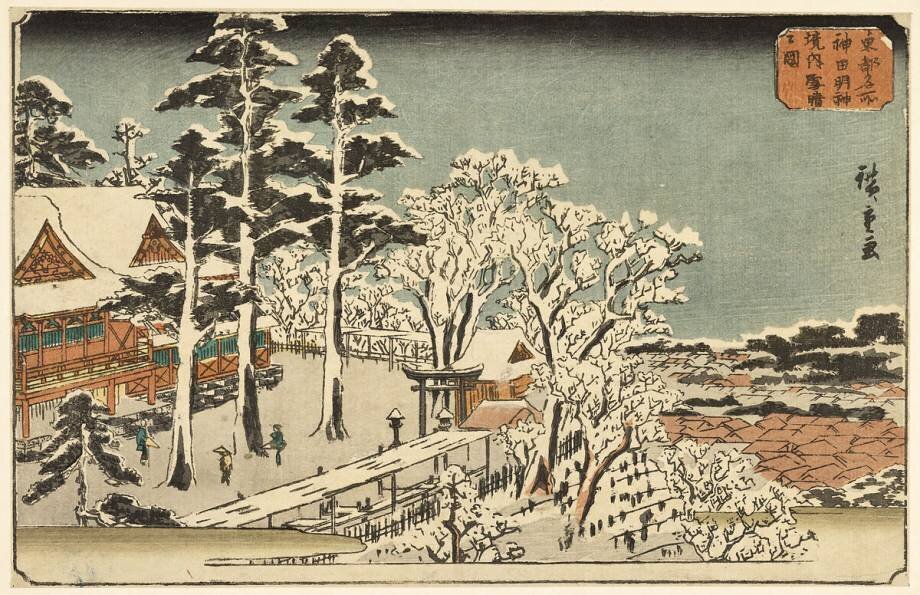 Temple of Kunda Myôin under the snow OF Hiroshige