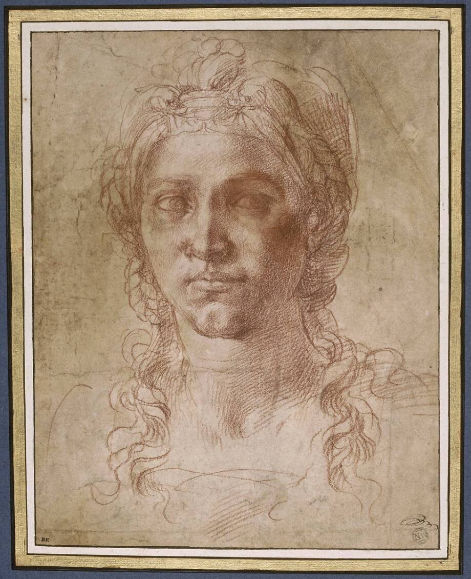« Tête de femme vue de face, les cheveux nattés » is kept at Louvre, Paris, France.