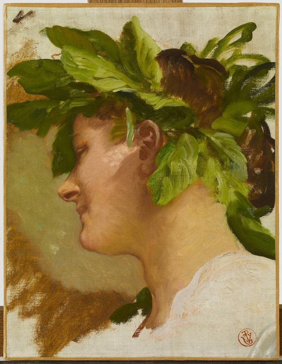 Tête féminine couronnée de laurier, de profil