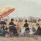 Subjects: SeascapeKeywords: Normandy, Painting, Trouville, beach, coast, Painting, parasol, reading, sea, seaside, shore(Ref : 272608) © Christie's Images / Bridgeman Images