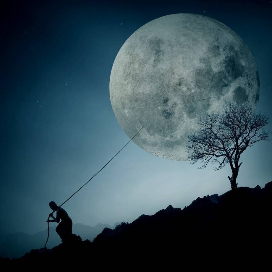 Subjects: FantasyKeywords: Sisyphus, contemporary visual photography, dreamlike, man, mountain, night, photography, shadow(Ref : 194017) © Final Toto / 1X