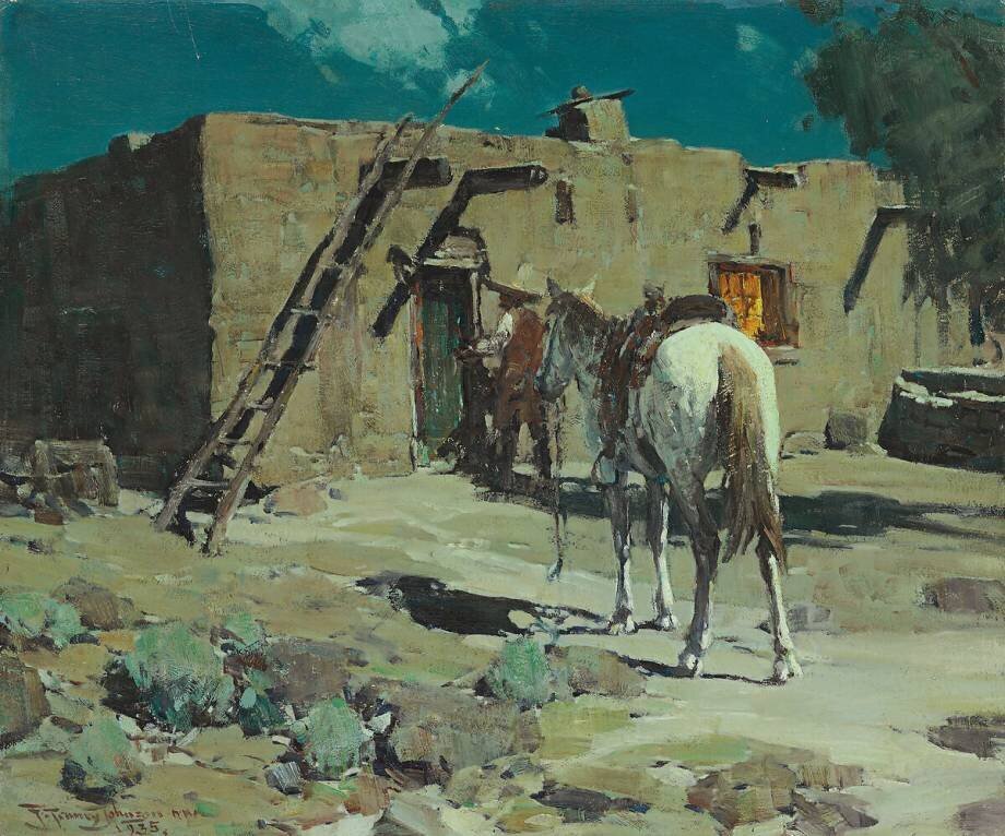 Subjects: Animals, ArchitectureKeywords: 1930s, 20th century, Sun, animal, apartment block, architecture, back, building, day, door, electricity, entrance, equestrian, equestrian, evening, foliage, full-length, horse, house, human, illumination, ladder, mammal, man, maturity, nature, oil, oil, outside, people, people, person, plant, saddle, standing, twilight, visitor(Ref : 345121) © Photo © Christie's Images / Bridgeman Images