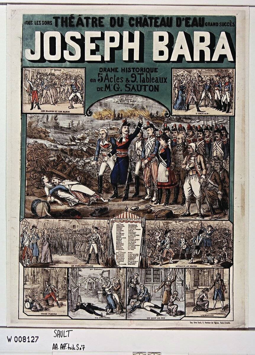 « Théâtre du Château d'eau. Joseph Bara, drame historique en 5 actes et 9 tableaux de M. G. Sauton,... » is kept at Bibliotheque Nationale, Paris, France.