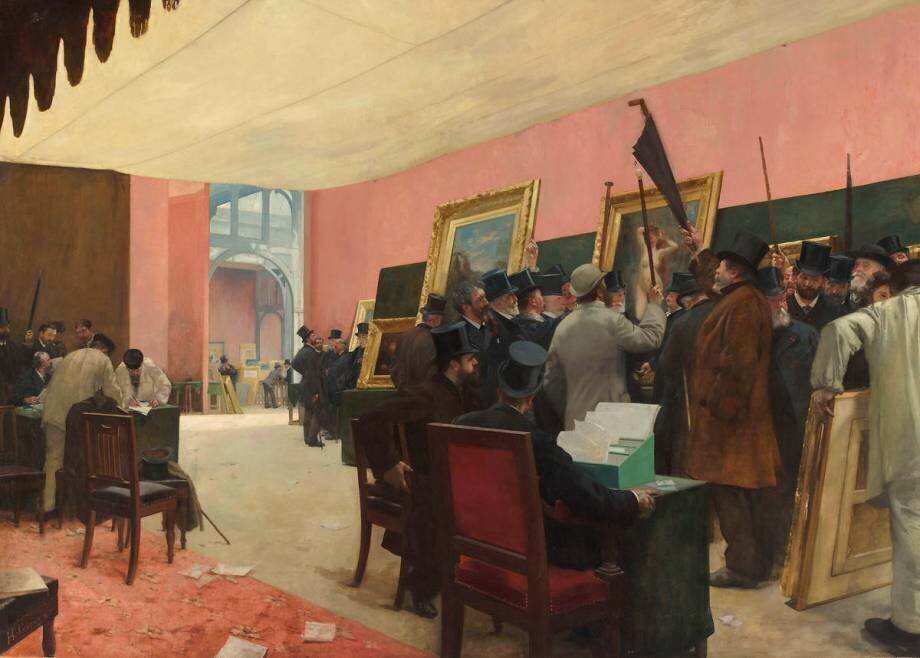 « Une séance du jury de peinture au Salon des Artistes français (1883 ?) » is kept at Musee d'Orsay, Paris, France.