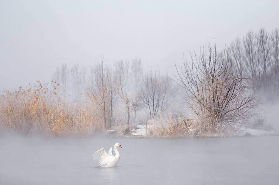Subjects: LandscapeKeywords: fog, lake, swan, tree(Ref : 220414) © UU / 1X