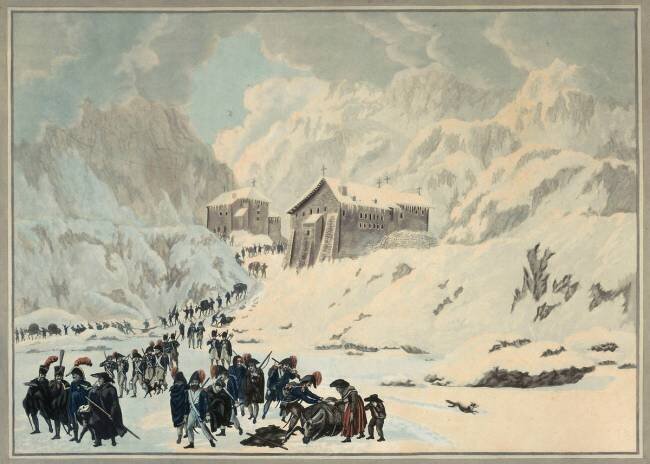 « Vue de l'hospice du Mont Saint-Bernard prise du milieu du lac » is kept at Musée de l'Armée, Paris, France.