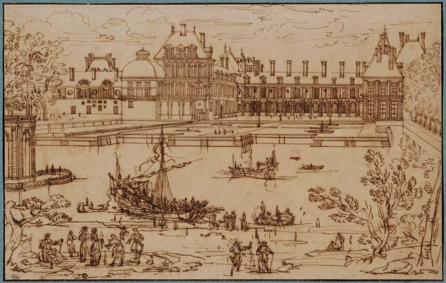 « Vue du château de Fontainebleau du côté de la pièce d'eau 1645 » is kept at Louvre, Paris, France.